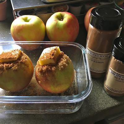 If you aren't a fan of the slow cooker, here's the oven method. Core the apples, place a pat of butter inside each apple, sprinkle with nutmeg and cinnamon, a sprinkle of raisins and place in preheated 400 degree oven for an hour or until the apples are soft.